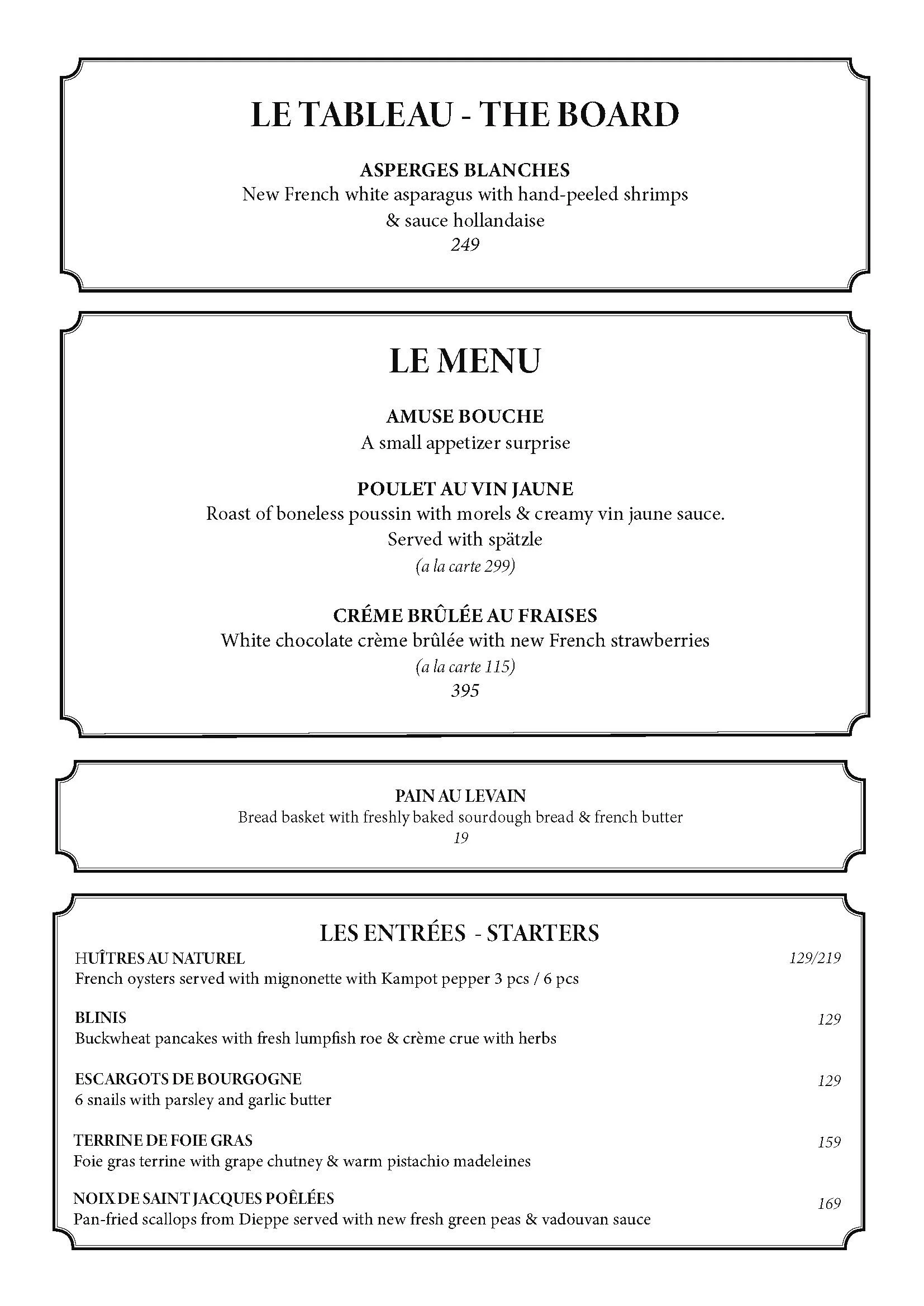 our menus Lunch – from 11.30 am Click to enlarge Click to enlarge Book a table Book a table Aperitifs / Snacks – from 4 pm Click to enlarge Book a table Book a table Dinner – from 5 pm Click to enlarge Click to enlarge Book a table Book a table The daily stuff Se i fuld størrelse Se i fuld størrelse Se i fuld størrelse Se i fuld størrelse Se i fuld størrelse Se i fuld størrelse Se i fuld størrelse Se i fuld størrelse Se i fuld størrelse Se i fuld størrelse Follow us Follow us