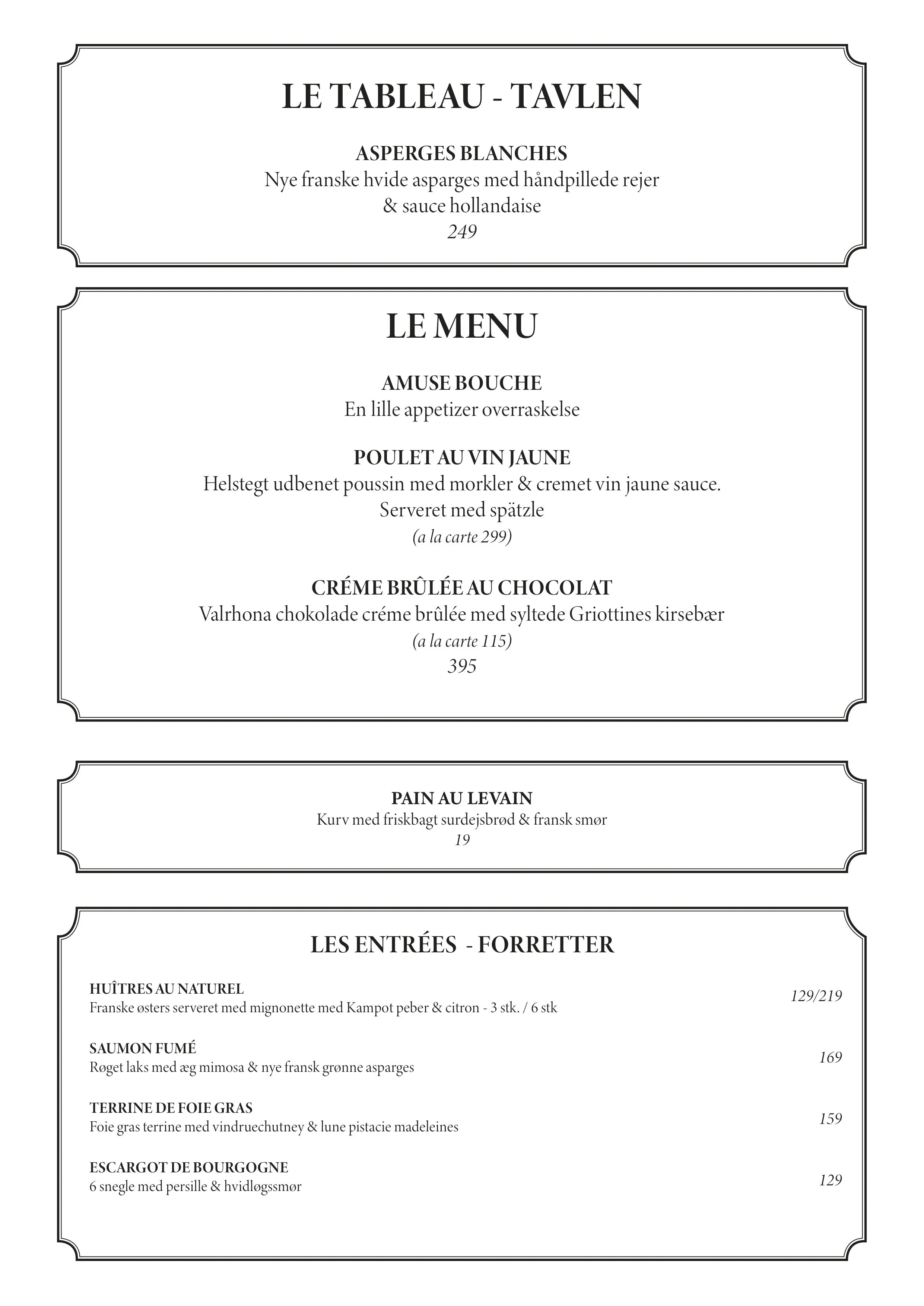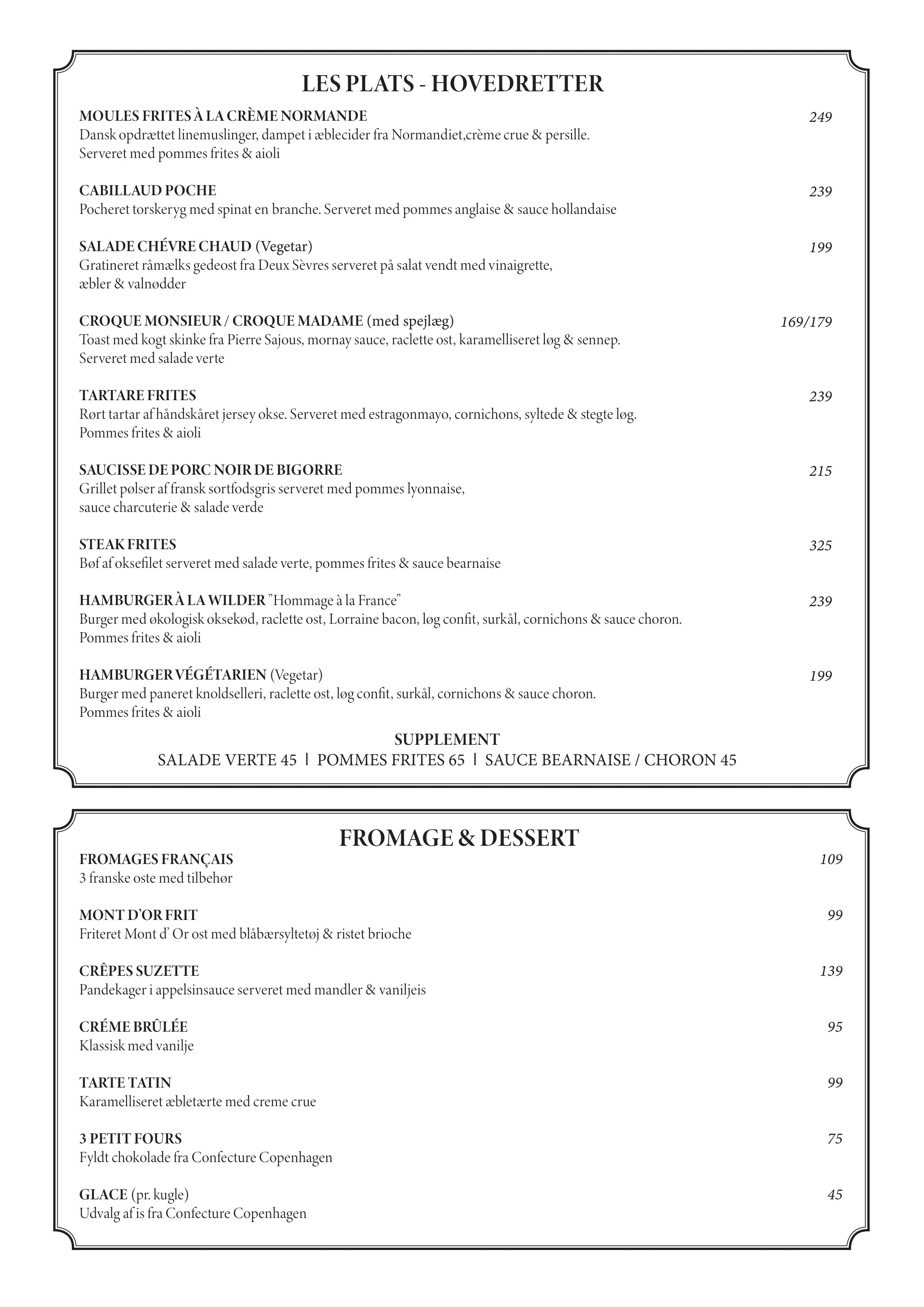 vores menuer Frokost – fra 11.30 Klik menu for at forstørre Klik menu for at forstørre Reservér bord Aperitifs / Snacks - fra 16.00 Klik menu for at forstørre Reservér bord Aften – fra 17.00 Klik menu for at forstørre Klik menu for at forstørre Reservér bord Vores dagligdag Se i fuld størrelse Se i fuld størrelse Se i fuld størrelse Se i fuld størrelse Se i fuld størrelse Se i fuld størrelse Se i fuld størrelse Se i fuld størrelse Se i fuld størrelse Se i fuld størrelse Følg os her